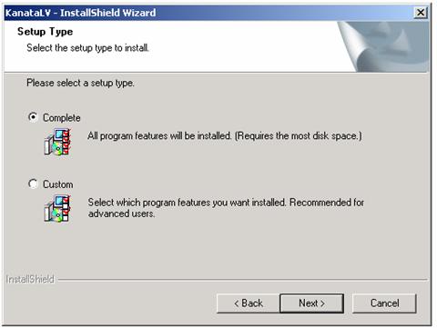 Click “Next” button to go to the next step. Choose “Complete” radio button, or “Custom” radio button to install the system into alternate location.  Again, click